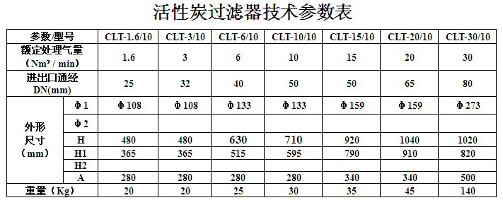 活性炭過(guò)濾器主要由擴(kuò)散裝置、氣體收集裝置及填充活性炭的容器組成,含有殘油的壓縮空氣自擴(kuò)散裝置氣體擴(kuò)散后進(jìn)入容器內(nèi),與活性炭表面接觸進(jìn)行吸附,活化處理,壓縮空氣再至底部氣體收集裝置集氣后出氣。
